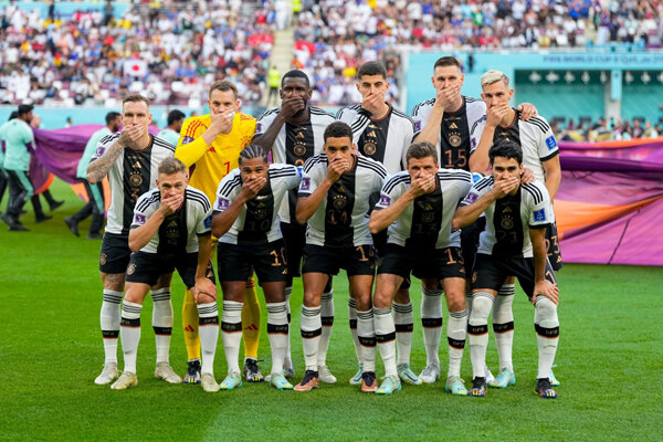 تیم ملی آلمان به تصمیم فیفا مبنی بر ممنوعیت بازوبند «OneLove» با دهان بسته اعتراض کردند.