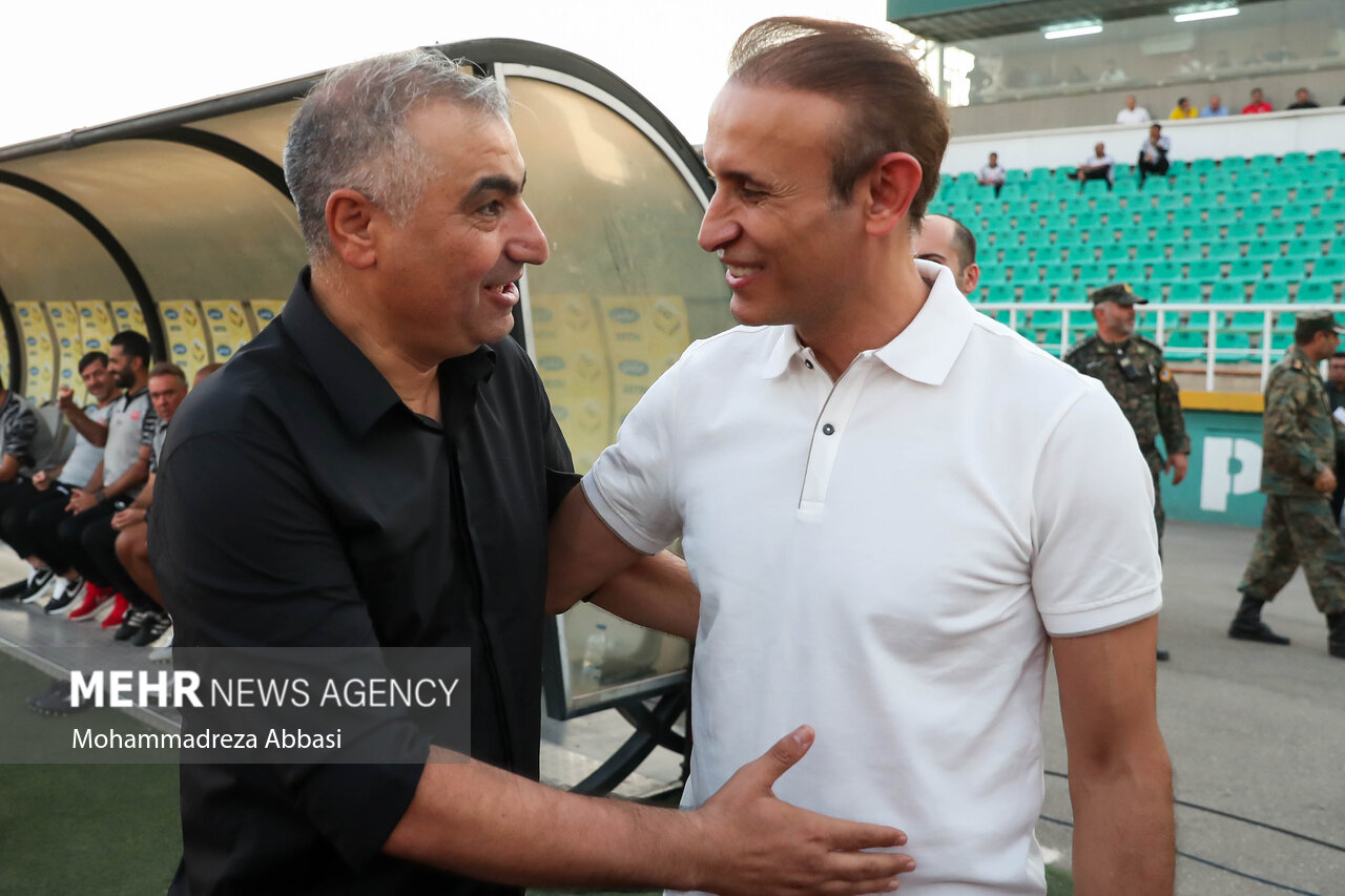 * مهدی تاج و کشوری فر قبل از شروع مسابقه با یحیی گل محمدی عکس یادگاری گرفتند.